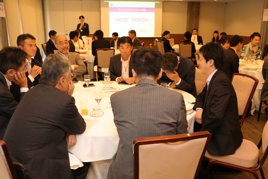 約40分間、課題を解決するためにテーブルごとに分かれて議論を交わし新規事業を考えるというものです。